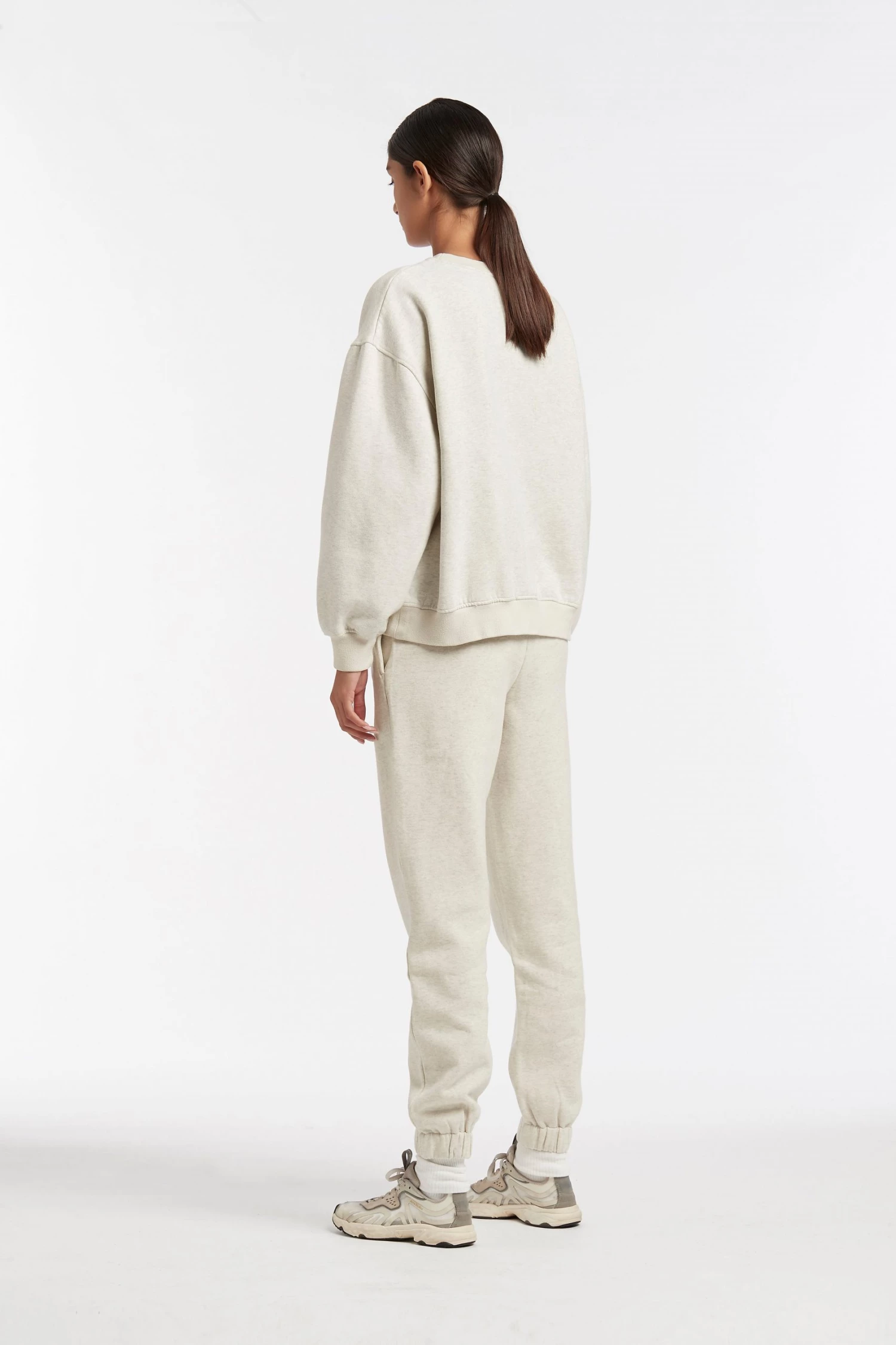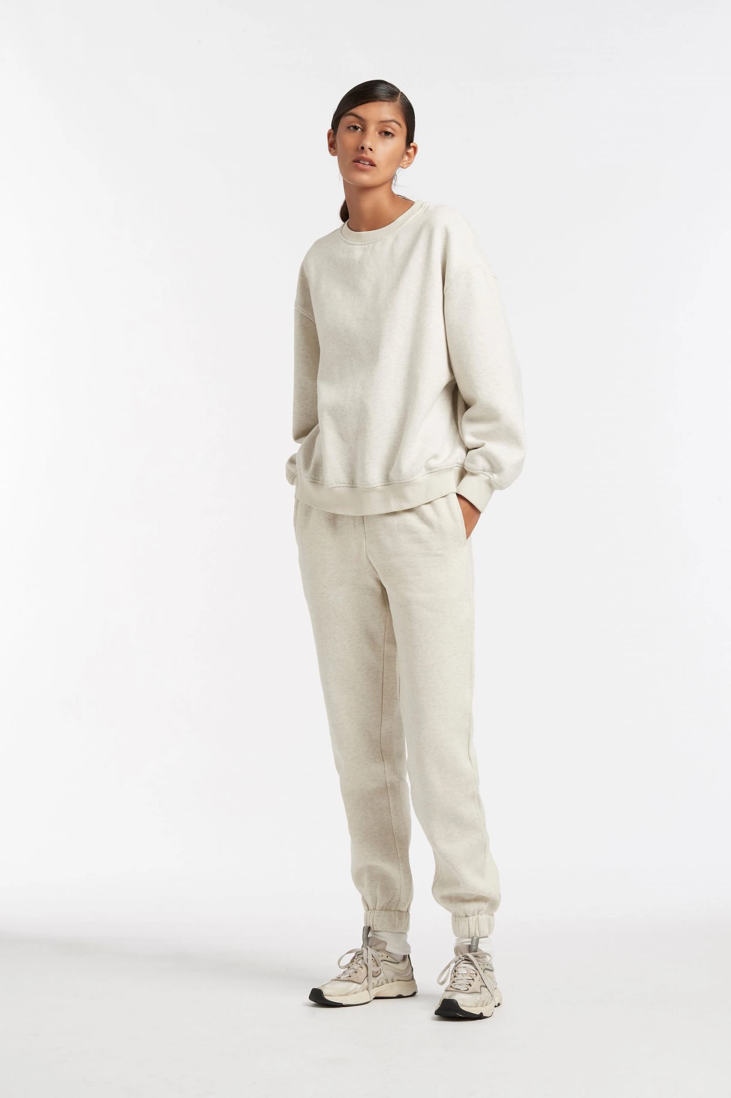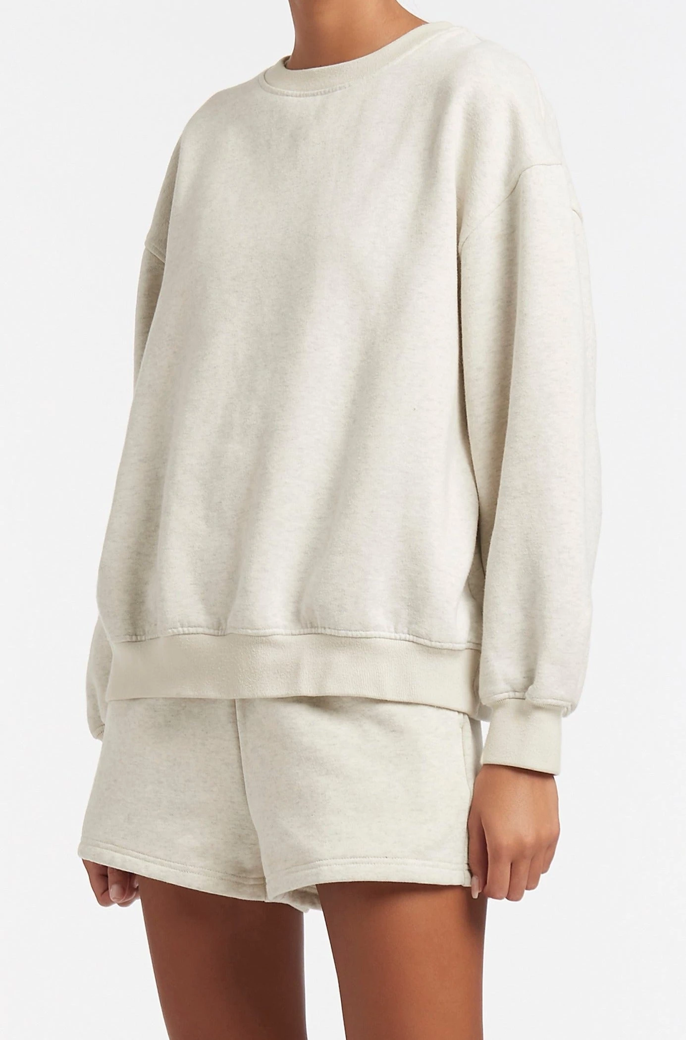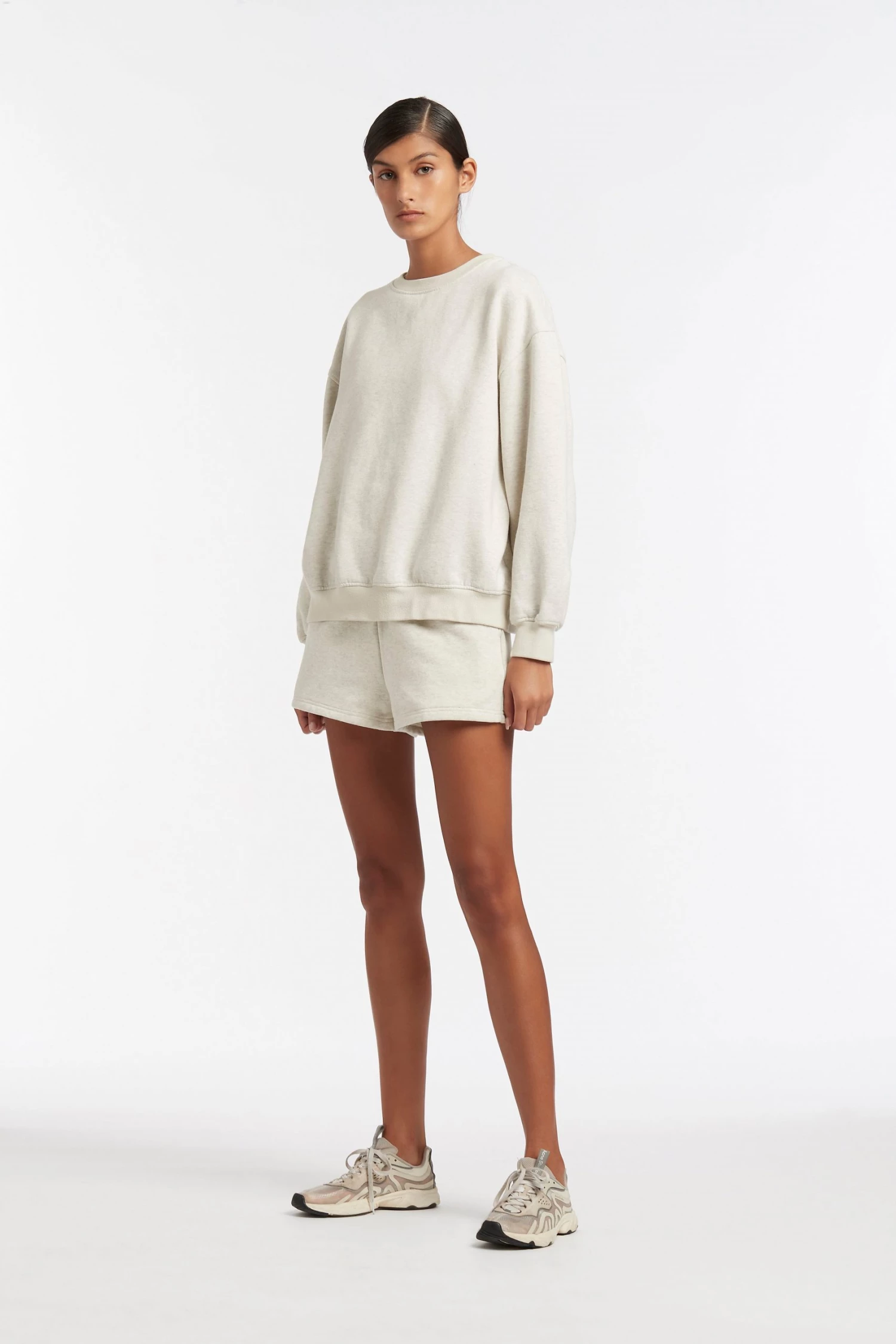 Crewneck sweater is an oversized fit and we recommend sizing down if you are between sizes