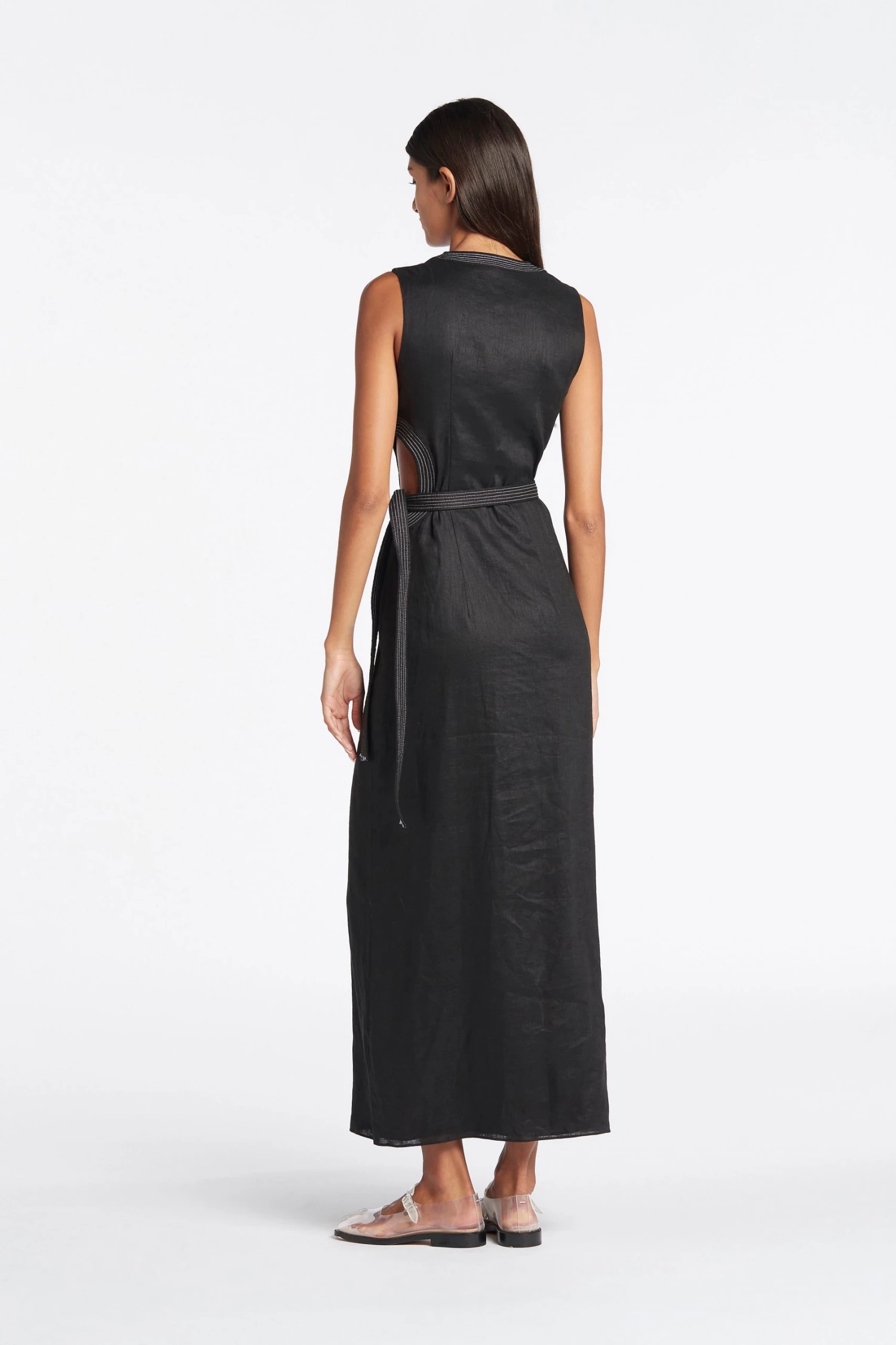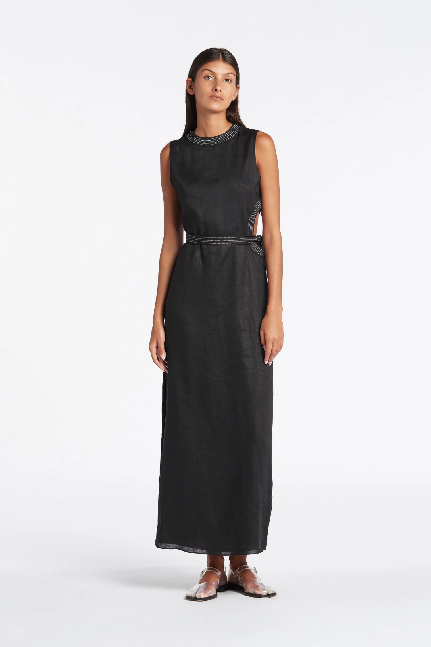 Waist cut out with band and contrast topstitch