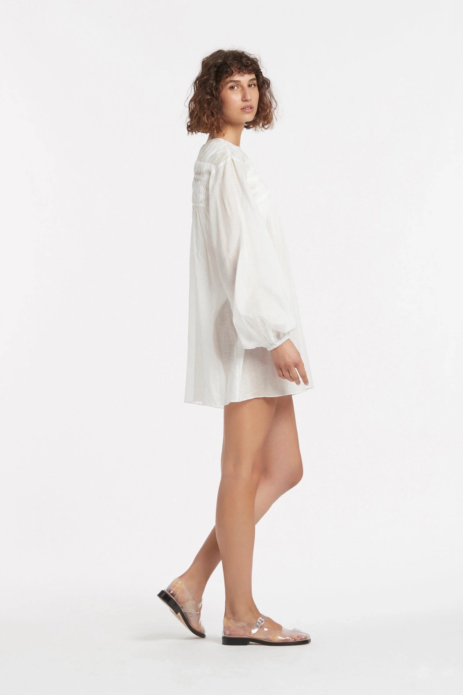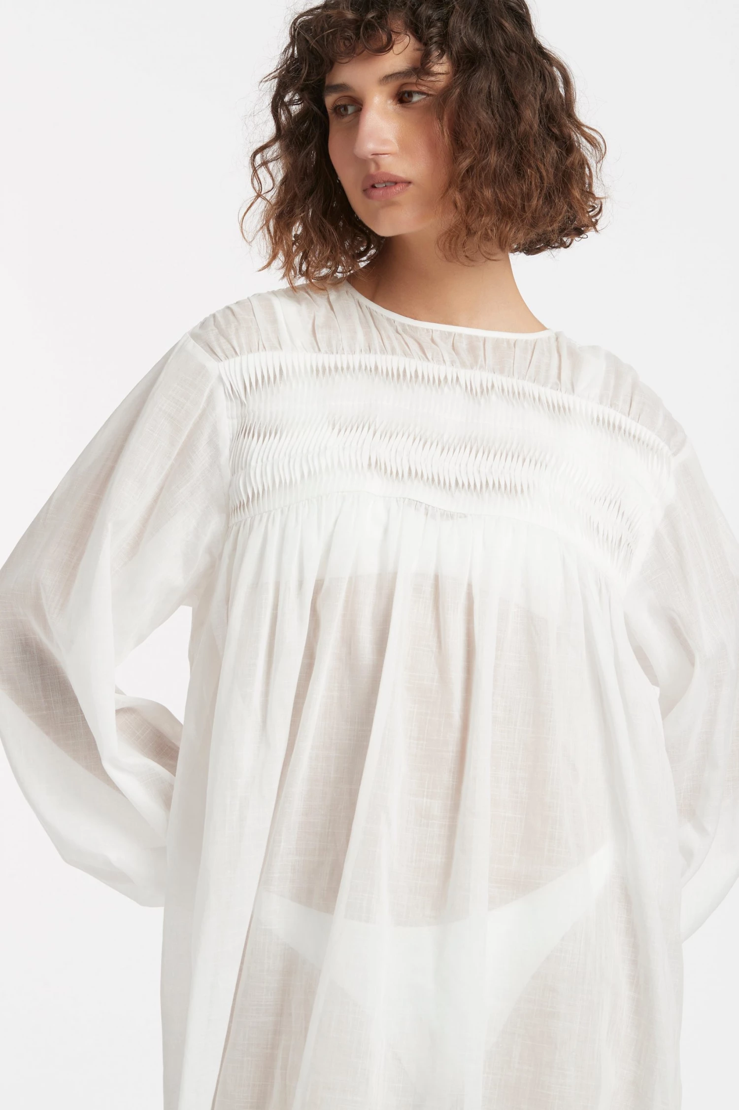 A lightweight and semi sheer cotton linen blend, featuring pin tucking detailing