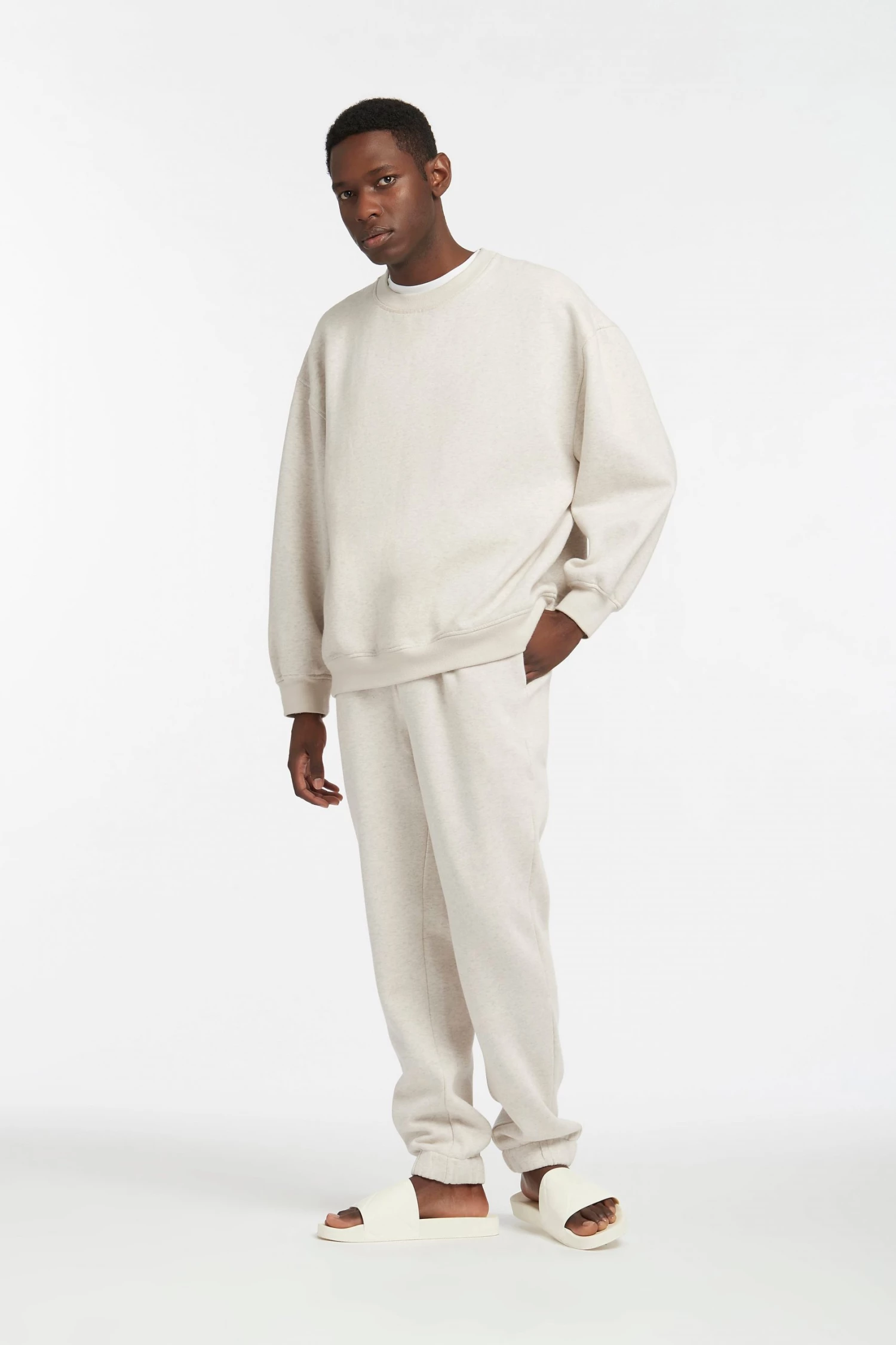 Crewneck sweater is an oversized fit and we recommend sizing down if you are between sizesÂ