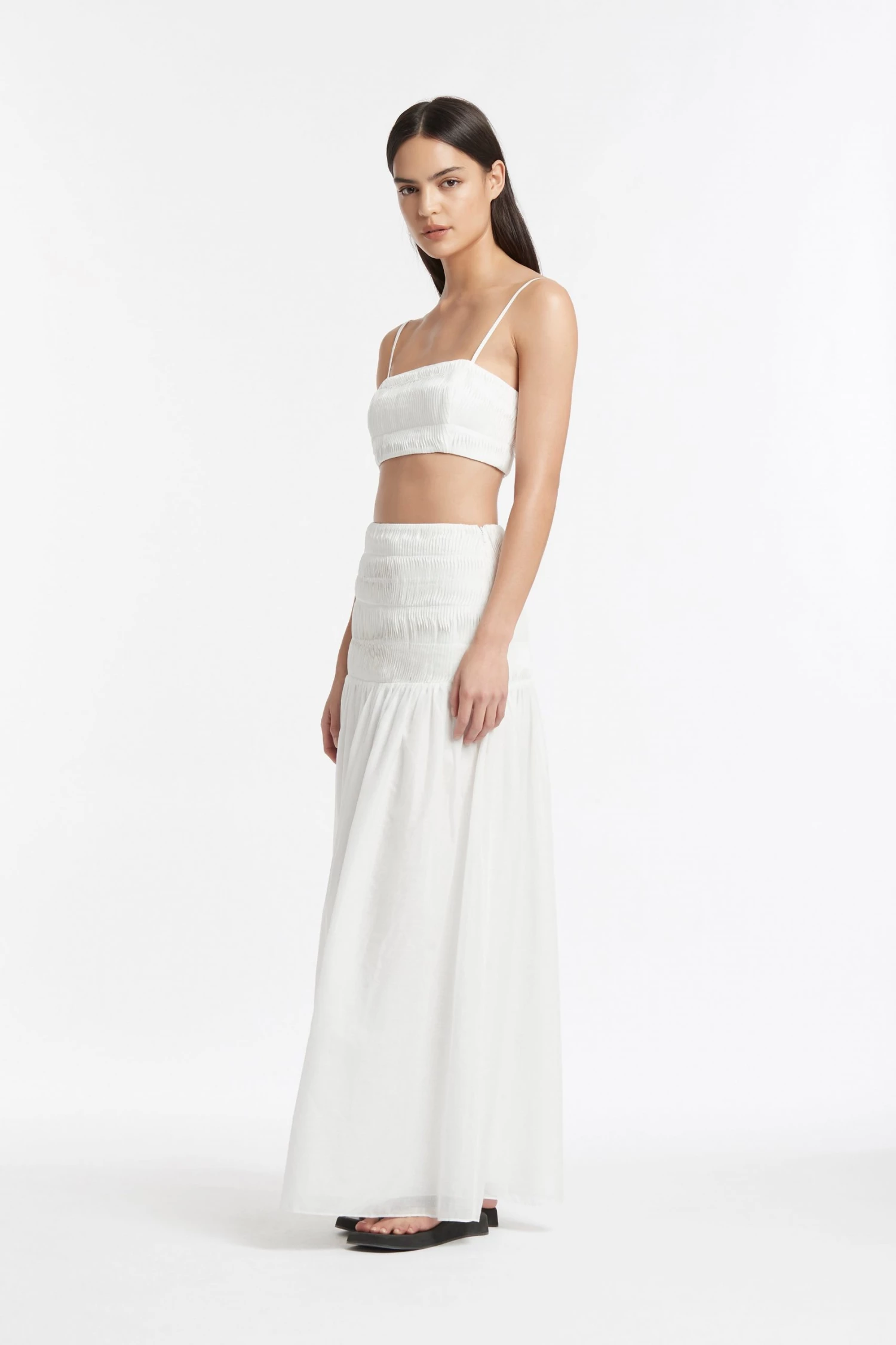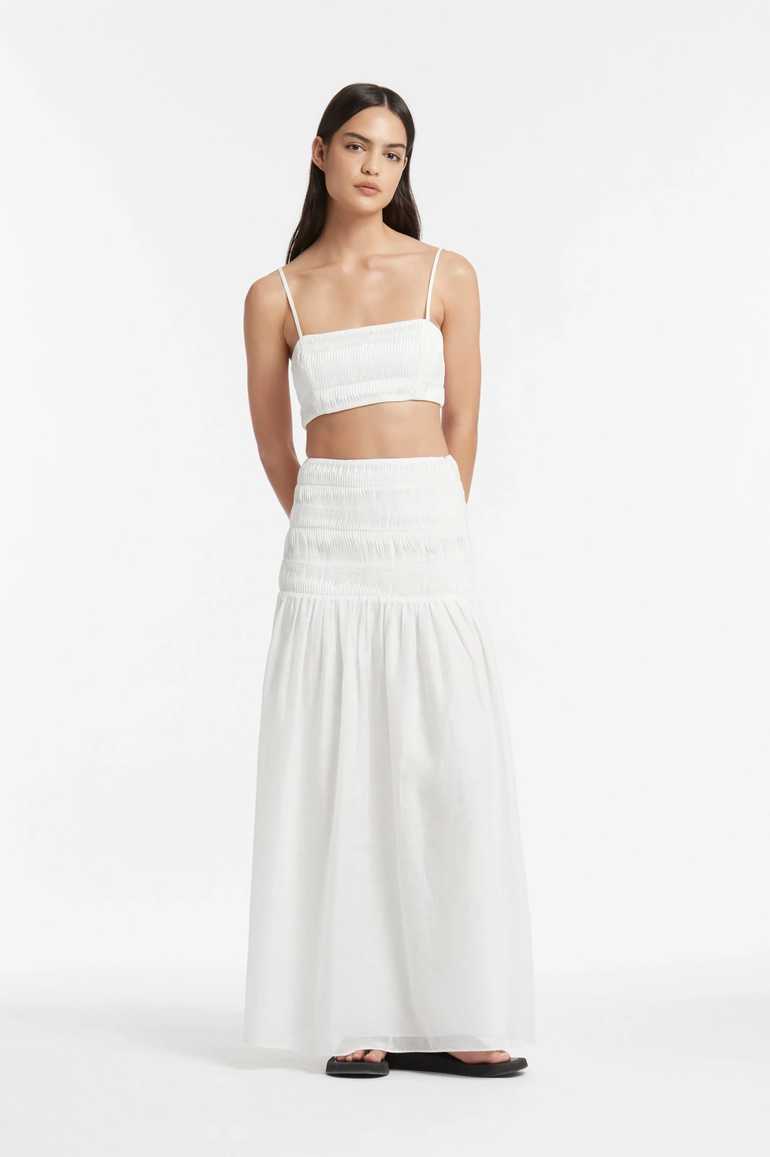 A lightweight and semi sheer cotton linen blend, featuring pin tucking detailing